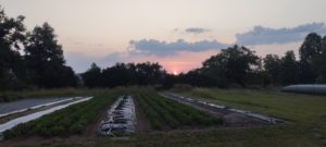 Un beau levé de soleil et déjà 28 degrés après avoir planté les poireaux dans la nuit…